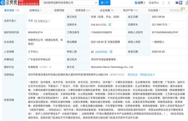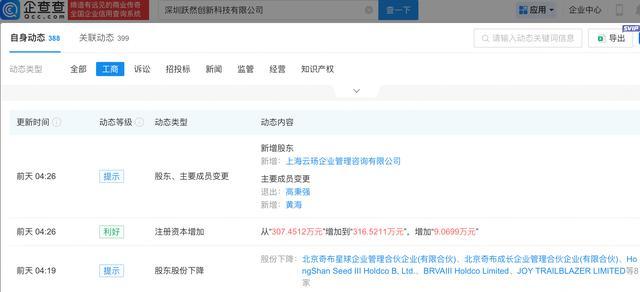 企查查APP线路,近日,深圳跃然立异科技有限公司发生工商变更,新增蚂蚁科技集团股份有限公司全资子公司上海云玚企业贬责不息有限公司为鼓舞,同期注册老本增至316.52万元。企查查信息线路,该公司开发于2021年,经营规模包含:货色收支口;软件开发;转移终局开辟制造;机械开辟研发等。公开信息线路,跃然立异是一家AI玩物公司。 一分彩APP官方网站下载