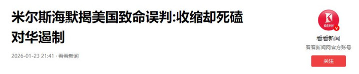 望望新闻:米尔斯海默揭好意思国致命误判:安稳却死磕对华进犯