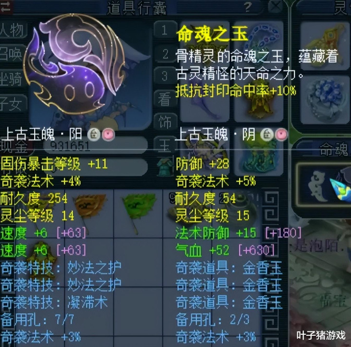 前排玉魄是双速率一固暴带3%奇袭法术,后排玉魄是一扫视一法防一气血带3%奇袭法术。区别嵌入14级、15级五色灵尘,奇袭法术几率接近极限,赛场PK赓续会有二次入手的高光发达。
