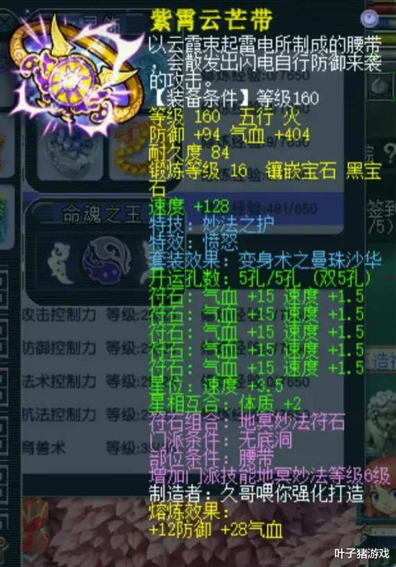 160级震怒妙法腰带,熔真金不怕火后扫视106、气血432。特手段莳植指标法防属性,可有用保护己方输出位。