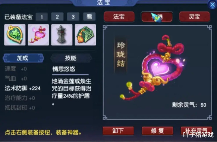 神器属性为224点法防,真顶尖呐!