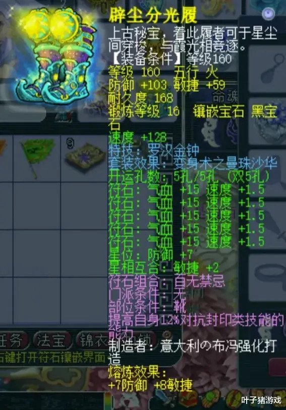 160级罗汉鞋子,熔真金不怕火后扫视110、敏捷68。在谛听横行的期间,罗汉能防护被谛听一波带走,其地位也越发烧切。