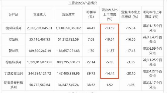 2025年年报自大,公司模制瓶、棕色瓶、管束瓶、安瓿瓶、丁基胶塞等中枢居品收入均出现不同程度下滑,其中基本盘模制瓶、棕色瓶下滑幅度均跳动10%。