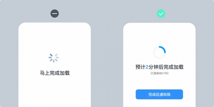 若瞻望恭候时候较长(如东谈主工客服列队、大型数据加载),切勿让用户被迫恭候,需为其提供可采用的替代决策,让用户能在恭候中进行其他操作,减缓懆急。