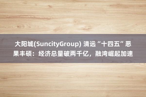 以广清一体化为中枢旅途,融湾发展步入快车说念。产业协违纪果丰硕,大阳城(SuncityGroup)广清经济相配息争区“三园”贬责机构进入实体化运作,签约技俩贪图总投资超2100亿元,欧派、立邦、上海电气等一巨额有名企业先后进驻。络续产业滚动主平台建立走在全省前哨,并率先建周全省首个新增“千亿级主平台”。