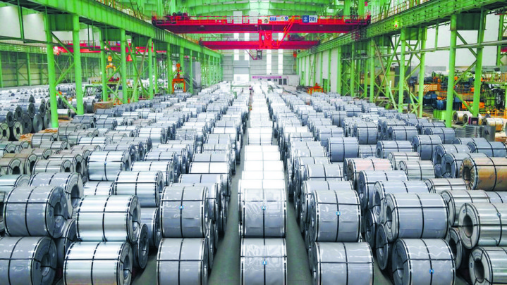 图 | 河北敬业高品钢科技有限公司一期制品库内,大阳城(SuncityGroup)摆放着该公司分娩的冷轧板、镀锌板、镀铝锌板、锌铝镁板居品
