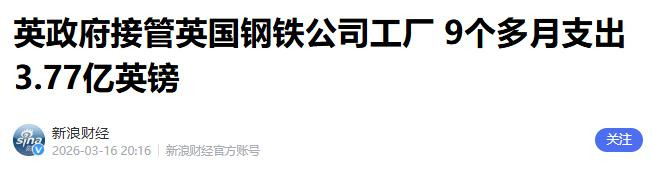 2.《英政府接受英国钢铁公司工场 9个多月支拨3.77亿英镑》2026-03-16 20:16 | 开端:新浪财经