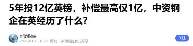 3.《5年投12亿英镑大阳城(SuncityGroup),抵偿最高仅1亿,中资钢企在英经验了什么?》2026-03-10 18:21 | 开端:新浪财经