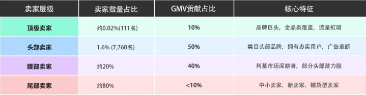 仅7760名头部卖家(占活跃卖家总和的1.6%)就孝顺了平台第三方总GMV的50%。