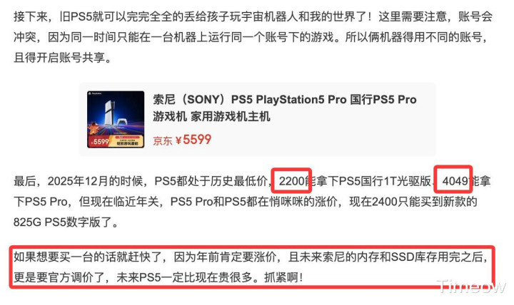 总之,当前扫数和存储关连的家具,在异日1~2年内价钱只高不低的,PC如斯、PS5如斯、Switch2和SteamDeck如斯、Xbox亦是如斯,更何况年底GTA6出来后,PS5和Xbox还可能会出现黑猴时一机难求的"盛况",真实别工整单机游戏玩家的消忙绿,你不买有的是东说念主买,到时价钱涨上天别怪没提前告诉你。