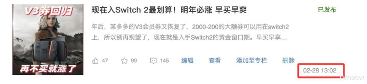 除此除外,思玩Switch2但还没买的一又友也请握紧了,我前段技能就写过著作分析过,“Switch2要连忙买,因为会加价”。