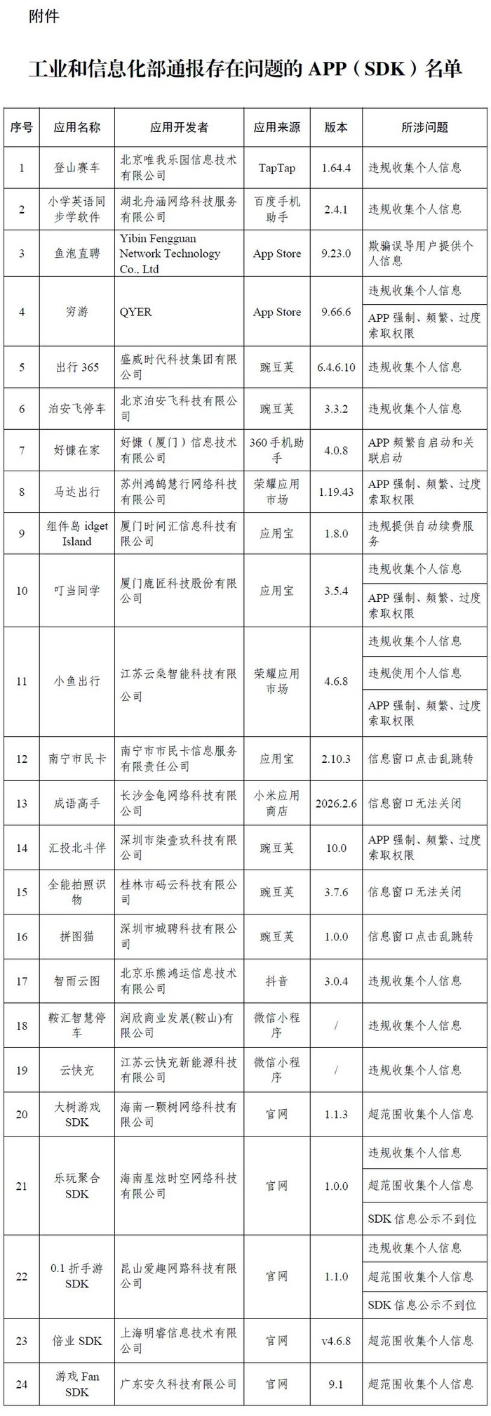 对于侵害用户权力举止的APP(SDK)通报