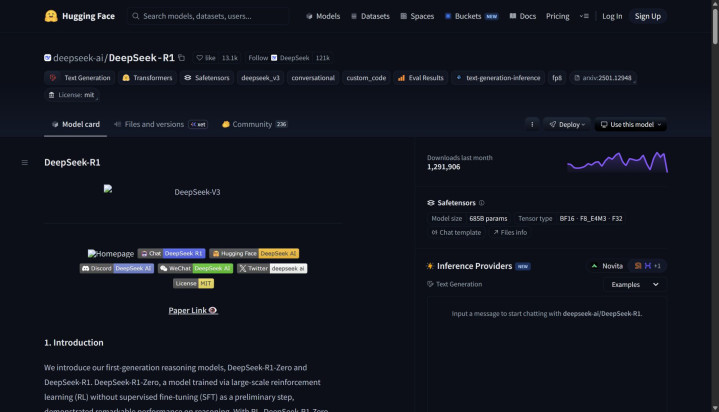 2025年1月20日,DeepSeek团队负责发布DeepSeek-R1推理模子,并第一时辰将齐备模子权重、时期文档同步开源至HuggingFace,这是它被巨匠发现的首先。