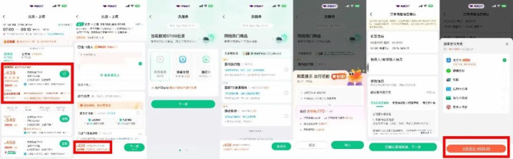在同程旅行APP,显现及操作则更为复杂。平台以“超值精选”“超60%用户采取”等话术强力保举的第一选项,以大字显现价钱439元,辅以小字“优惠后约422元”。点进这一选项后,记者资格了五次傍边的说明或采取才插足到最终的支付页面,且其中的多个附加产物采取浑浊性极强,中间多个步调莫得价钱显现。在未添加稀疏产物的情况下,最终插足到倒计时支付页面时金额为530元。