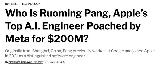 庞若鸣是谁?上海交通大学本科,普林斯顿大学博士,在谷歌深耕15年,随后主导苹果中枢AI基础模子从零到一的种植,是悉数这个词硅谷AI基础智商领域最稀缺的华东说念主大牛之一。