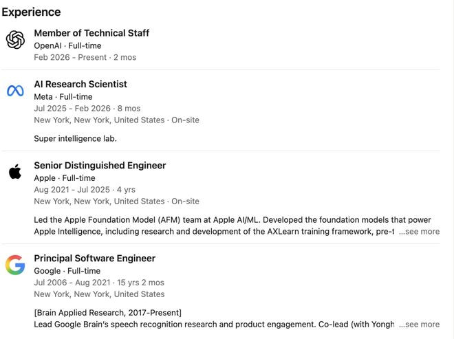 2026年2月,庞若鸣悄然下野,加入了OpenAI。