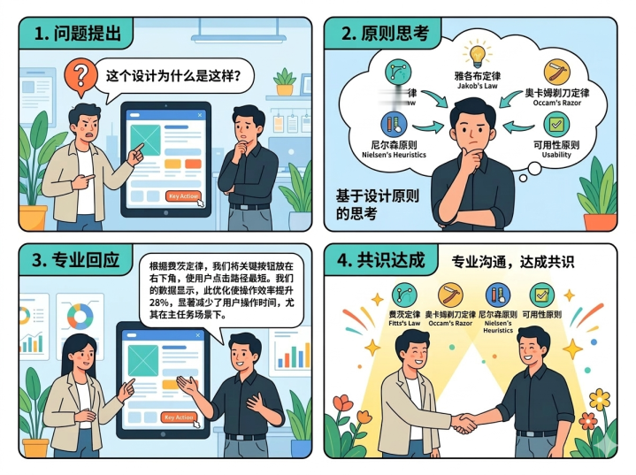 场景一:客户问”为什么操作按钮在左上角?放在右上角不是更常见吗?”