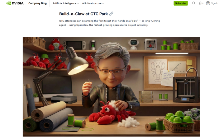据英伟达官方博客先容,鄙人周一至周四的GTC大会时期,除了黄仁勋周一演讲的两个小时外,GTC公园将全程举行“搭建龙虾”行径,与会者不错在现场部署一个耐久在线的AI助手。