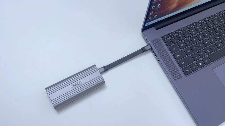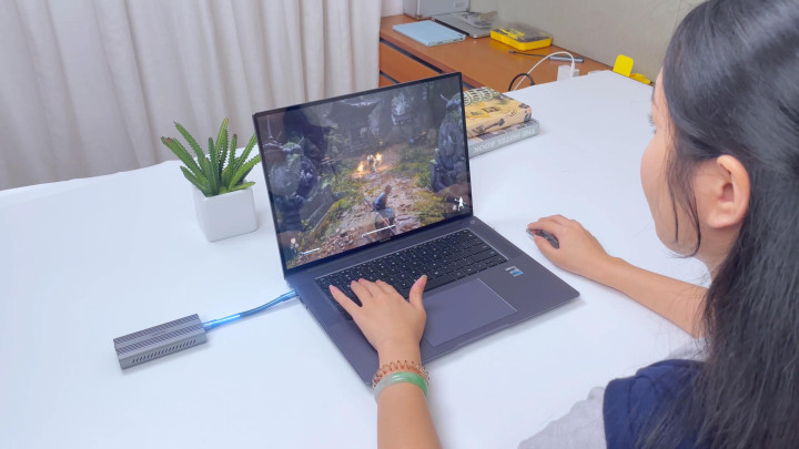 把固态装进硬盘盒,插上条记本Type-C高速接口(雷电3/雷电4/雷电5/USB4接口),游戏完全下载装配在外置盘里,一个即插即用的外置游戏库,就成了。